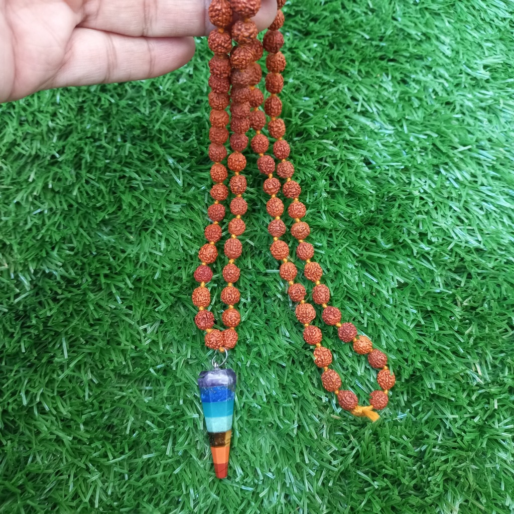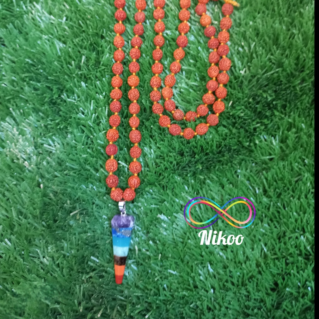 گردنبند رودراکشا با اویز هفت چاکرا مسی